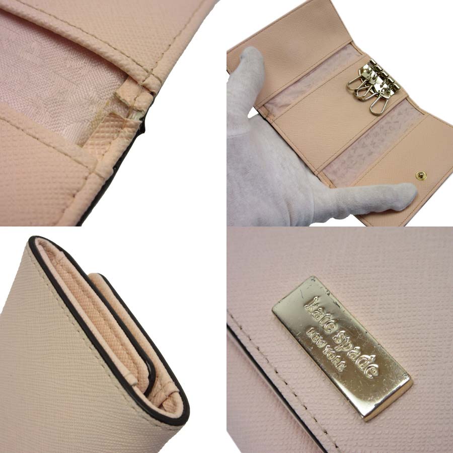 【定番人気】 【中古】ケイトスペード【kate spade】 4連キーケース レディース ベージュ系xゴールド レザー ■商品状態:内側折り目に切れ等の使用感がありますが、まだまだお使いいただけるコンディションです。