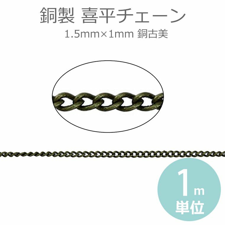 銅製 喜平チェーン 1.5mm×1mm 銅古美(1m単位)【ゆうパケット対応】