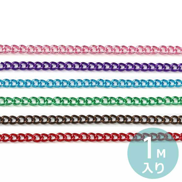 合金製 喜平チェーン 選べる6色(ピンク、パープル、ブルー、グリーン、ブロンズ、レッド)約1.7mm(1M入)【ゆうパケット対応】